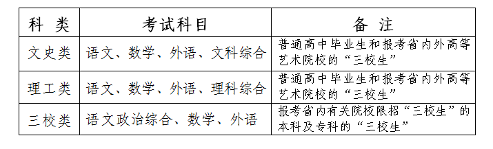 全省统考专业为:音乐学专业本、专科,美术学专业本、专科,艺术设计专业本、专科(含环境、装璜、服装、装饰、染织、室内与家俱、广告艺术设计等)。