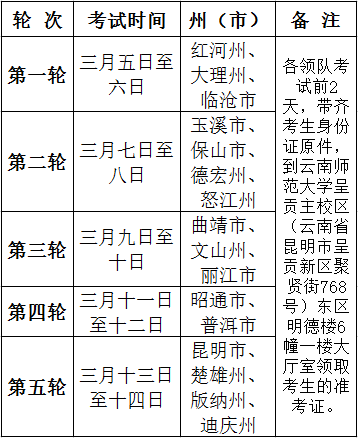 1.考试地点:云南师范大学呈贡主校区(云南省昆明市呈贡新区聚贤街768号)